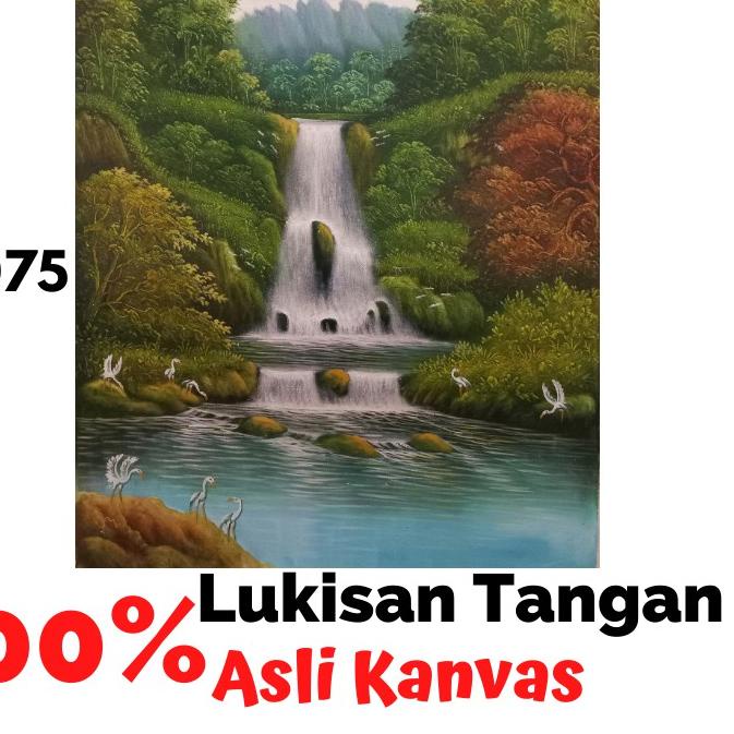 Beli lukisan pemandangan air terjun 60 x 80 cm terbaru di shopee.